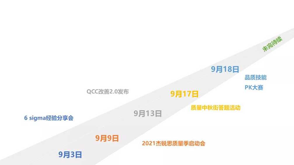 9月开始,欧亚国际陆续通过质量季启动会、6sigma分享会、QCC改善、技能PK大赛、质量中秋街等活动不断提升全员品质意识。